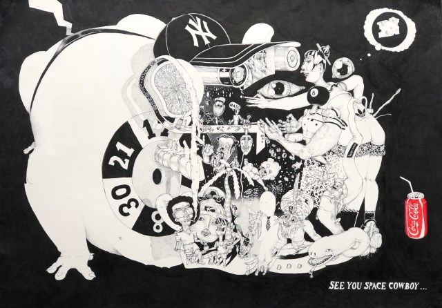Oskar: ”Jag vill återspegla världen runtom oss genom min bildvärld. Motiven inkluderar kommersiella symboler, vardagliga objekt, knasiga karaktärer mfl.”